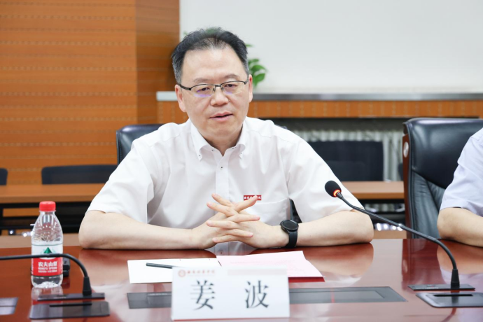 姜波理事长对郭占武书记一行的来访表示欢迎,介绍了学校的历史沿革、红色基因、办学成果及优势特色,他指出,校企合作要有大局观:一是把握根本遵循,不断锤炼能力,提升队伍水平,丰富人才培养路径,筑牢应用型人才培养的能力基石;二是要突出现实导向,清醒认识经济形势剧变下学校教育面临的新形势、新任务、新挑战,不断强化资源融通,打造校企合作的全新模式;三是找准实践路径,以校企共建为切入点,持续引进优质的校政企地资源,互为依托,彼此赋能,为经济社会高质量发展做出更新更大的贡献。