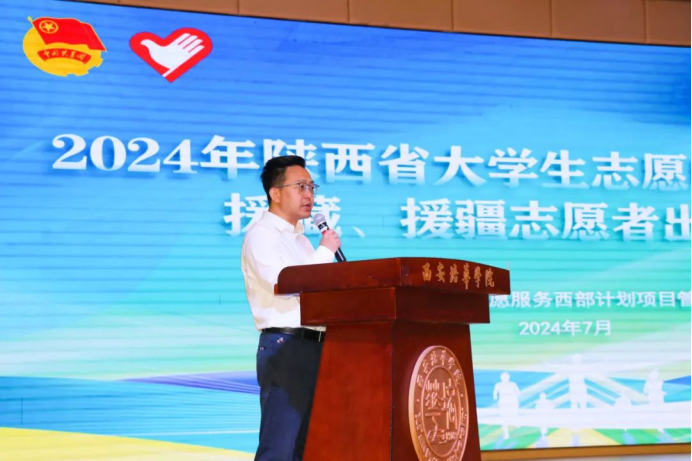 7月14日,2024年陕西省大学生志愿服务西部计划援藏、援疆志愿者出征仪式在多多28举行。团省委副书记、省西部计划项目办主任惠旋,团省委二级巡视员王军民出席活动并为援藏、援疆志愿服务队授旗。我省382名西部计划志愿者将奔赴西藏、新疆和兵团开展为期1至3年的志愿服务。