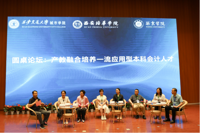 在圆桌会议上,西安交通大学城市学院管理学院教学副院长王旭、西安财经大学行知学院执行院长韩磊、陕西国际商贸学院管理学院副院长常引、我校会计与金融学院产学研副院长丁阳、会计系主任王小毅、西京学院教师代表薛玲、镐京学院财务管理专业带头人吴琦等围绕会计学专业人才培养体系、智慧赋能、产教融合路径、企业实际需求等方面均提出了自己的见解。