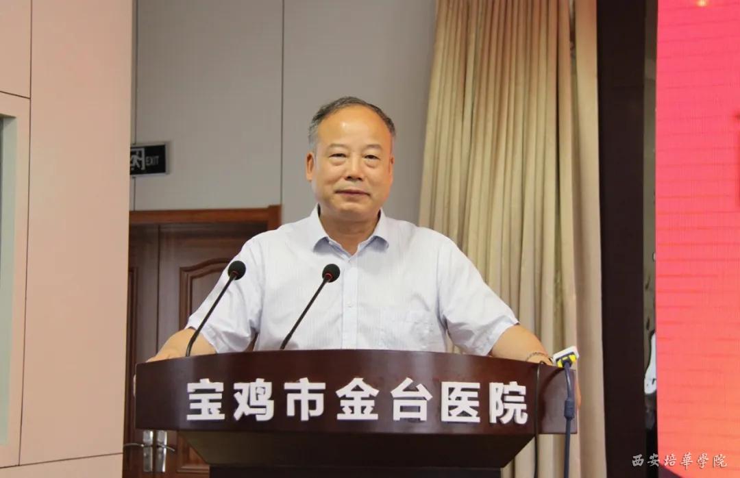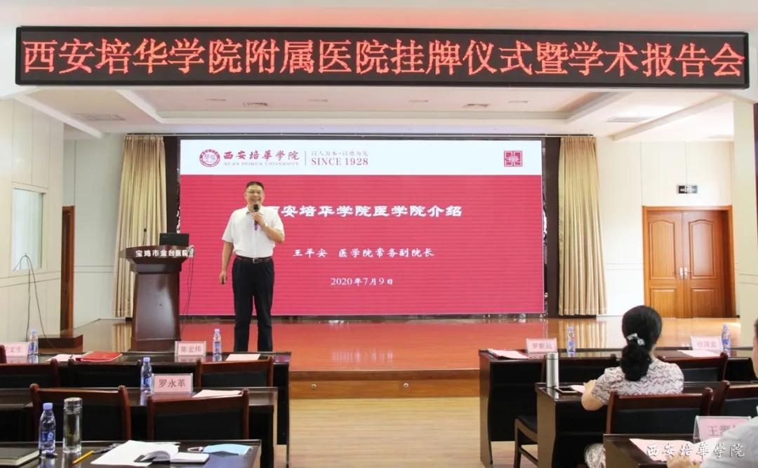 早上十点整,活动准时开始。仪式上,医院院长任文生向与会人员介绍了双方合作情况。任院长代表医院全体干部职工,向莅临揭牌仪式的各级领导、各位来宾表示了热烈的欢迎。他说,两年前,也是在这样一个流火的时节,在各级领导的关心、支持和重视下,借助国家精准扶贫和“双百工程”政策的东风,我们有幸和贵校签署战略合作协议。两年里,双方在多种合作方面进行了初步探索与尝试,取得了一定的进展与成绩。今天,金台医院成为培华学院附属医院,也是战略合作的一个重要内容,开启了院校合作的序幕,翻开了医院发展新的篇章,必将推动医院进入一个全新的发展时代。下一步我们双方将继续在医疗教学、科研攻关、人才培养、人员实习就业等方面开展全方位、多角度的深层次合作。通过院校合作的形式,创造出学校、医院共同发展的新模式。