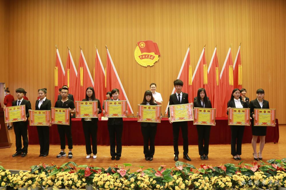 5月4日,我校在维之图书馆隆重召开纪念“五四”运动97周年暨2015-2016学年“五四”表彰大会,陕西省青年联合会副主席、我校理事长姜波,校长王拴才,党委书记周庆华,副校长兼党委副书记姚文静、徐国富出席表彰大会。各二级学院团总支,优秀团员代表500余人参加大会。会议由团委书记王翠主持。