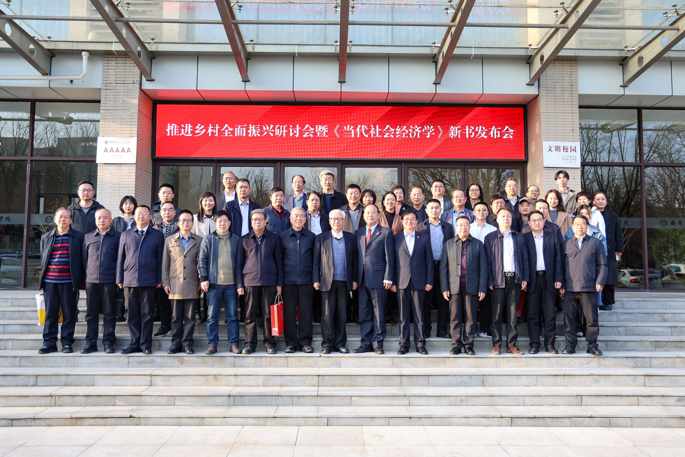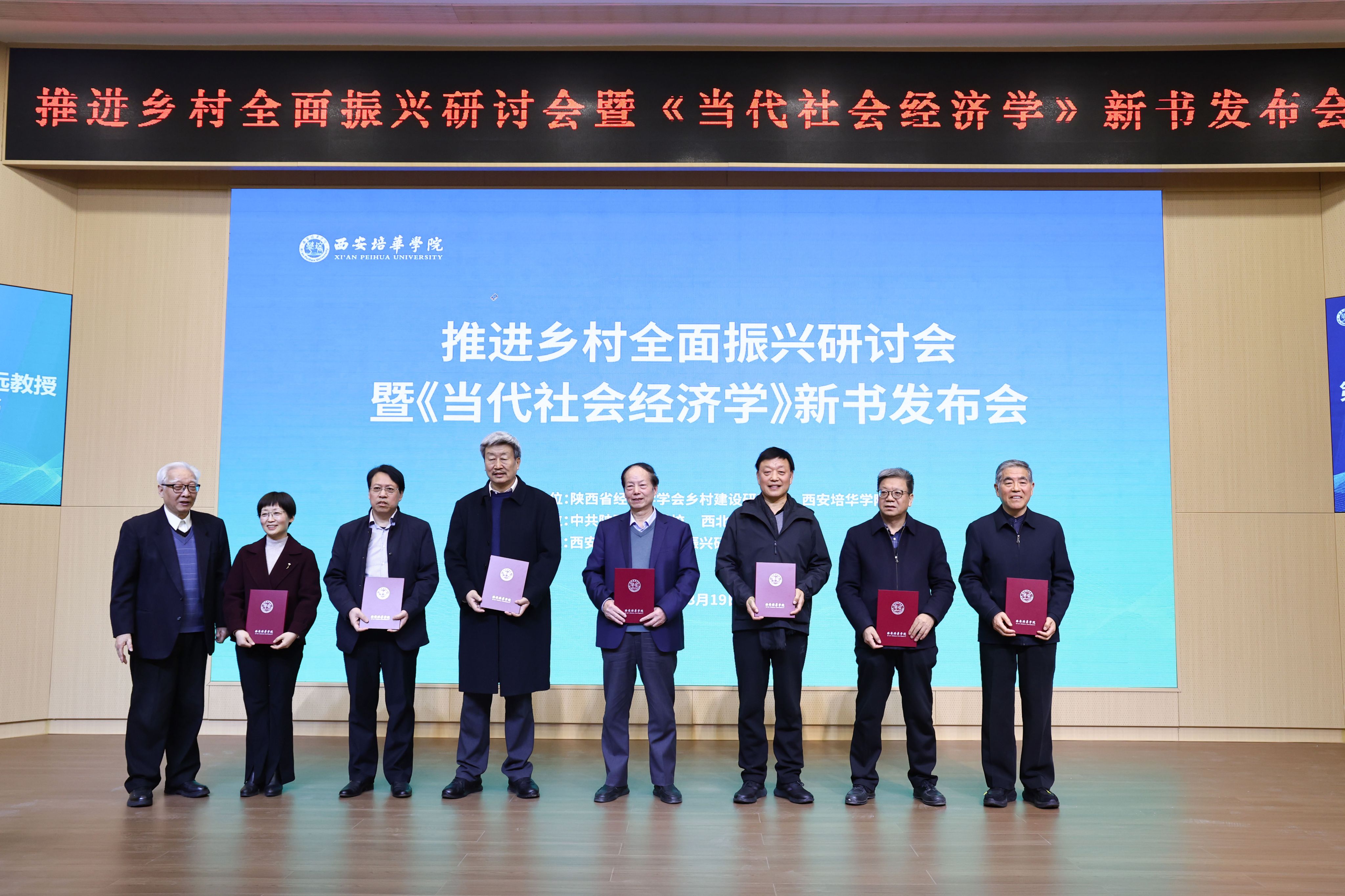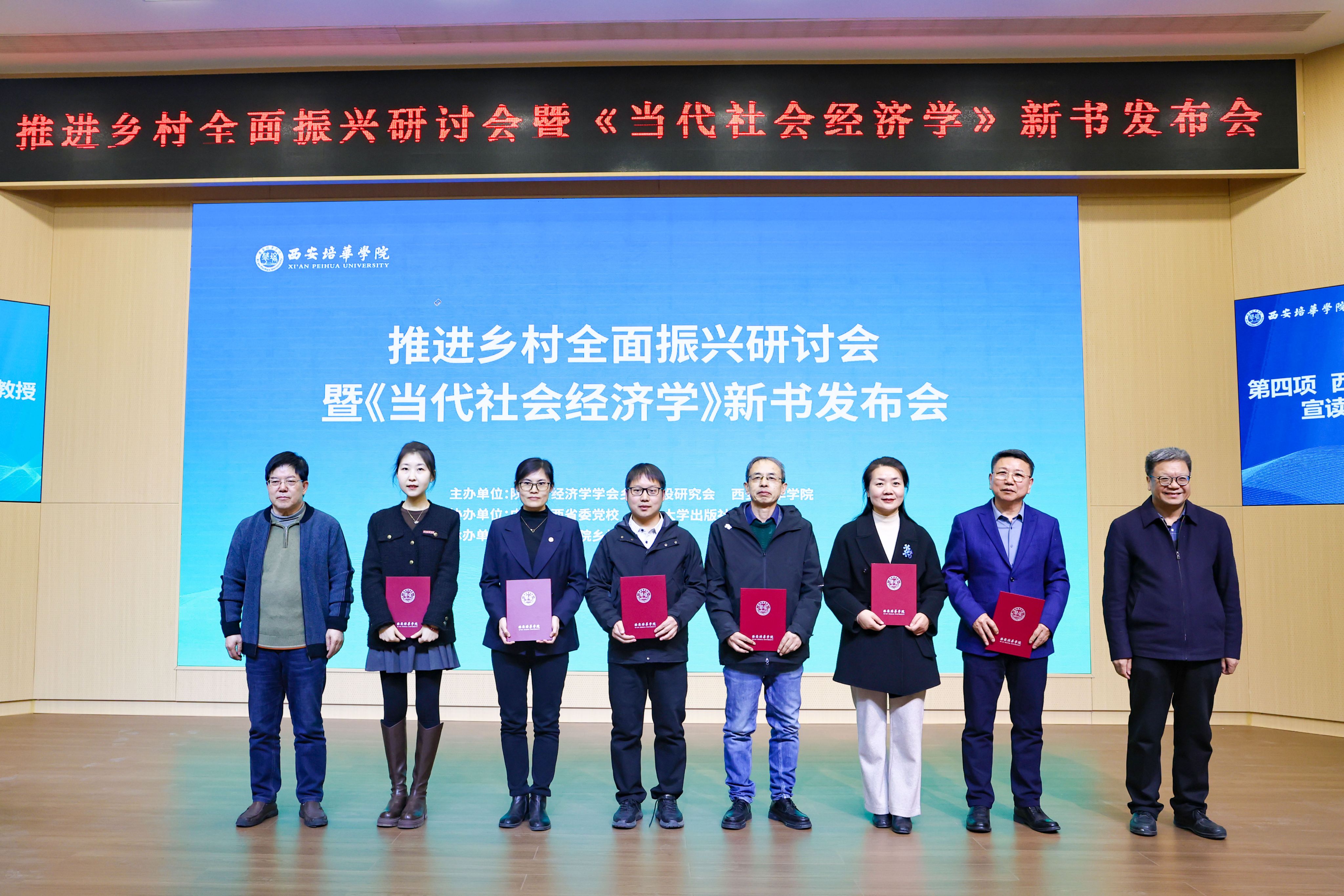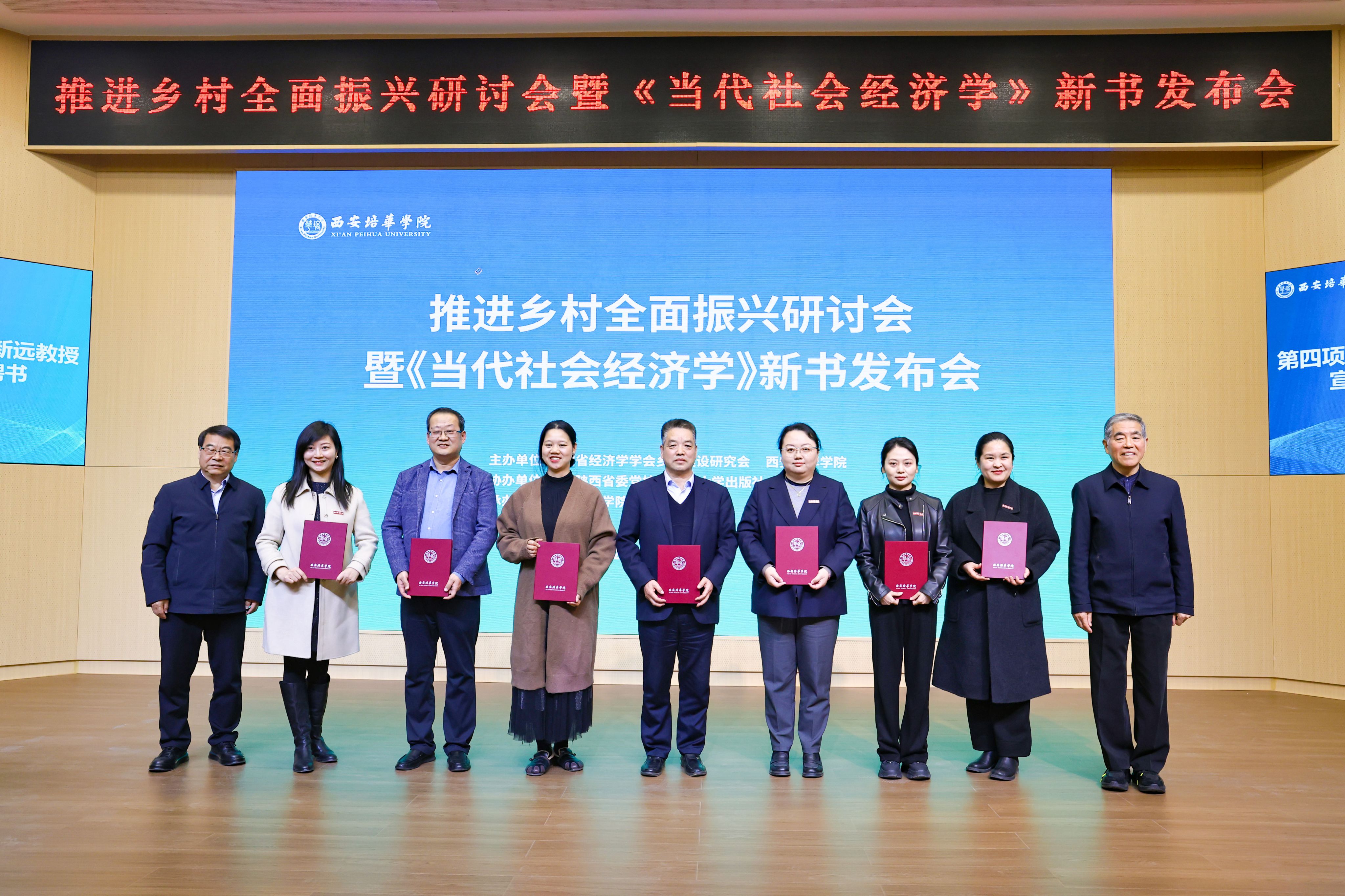 为深入贯彻落实党的二十大及二十届三中全会精神,全面落实2025年中央一号文件部署要求,全面推进乡村振兴战略,凝聚智力资源,发挥高校优势,助力陕西省县域经济高质量发展,3月19日下午,由陕西省经济学学会乡村建设研究会、多多28主办,中共陕西省委党校、西北大学出版社协办,多多28乡村振兴研究院承办的“推进乡村全面振兴研讨会暨《当代社会经济学》新书发布会”在明德楼报告厅举行。省内专家学者、政府代表、企事业单位代表、培华师生200余人齐聚一堂,共商乡村振兴发展大计。