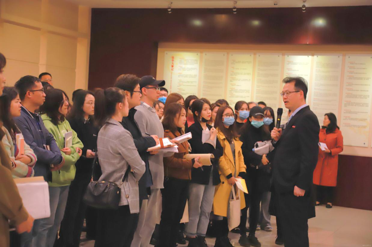 在校史馆,姜波理事长声情并茂地为新入职教师讲述了培华92年风雨坎坷的发展历程,以及一代又一代培华人奋斗的感人故事,他殷切希望培华的青年教师要肩负使命、接好接力棒,发扬好艰苦奋斗、勇往直前的培华精神,为祖国的教育事业奉献力量。