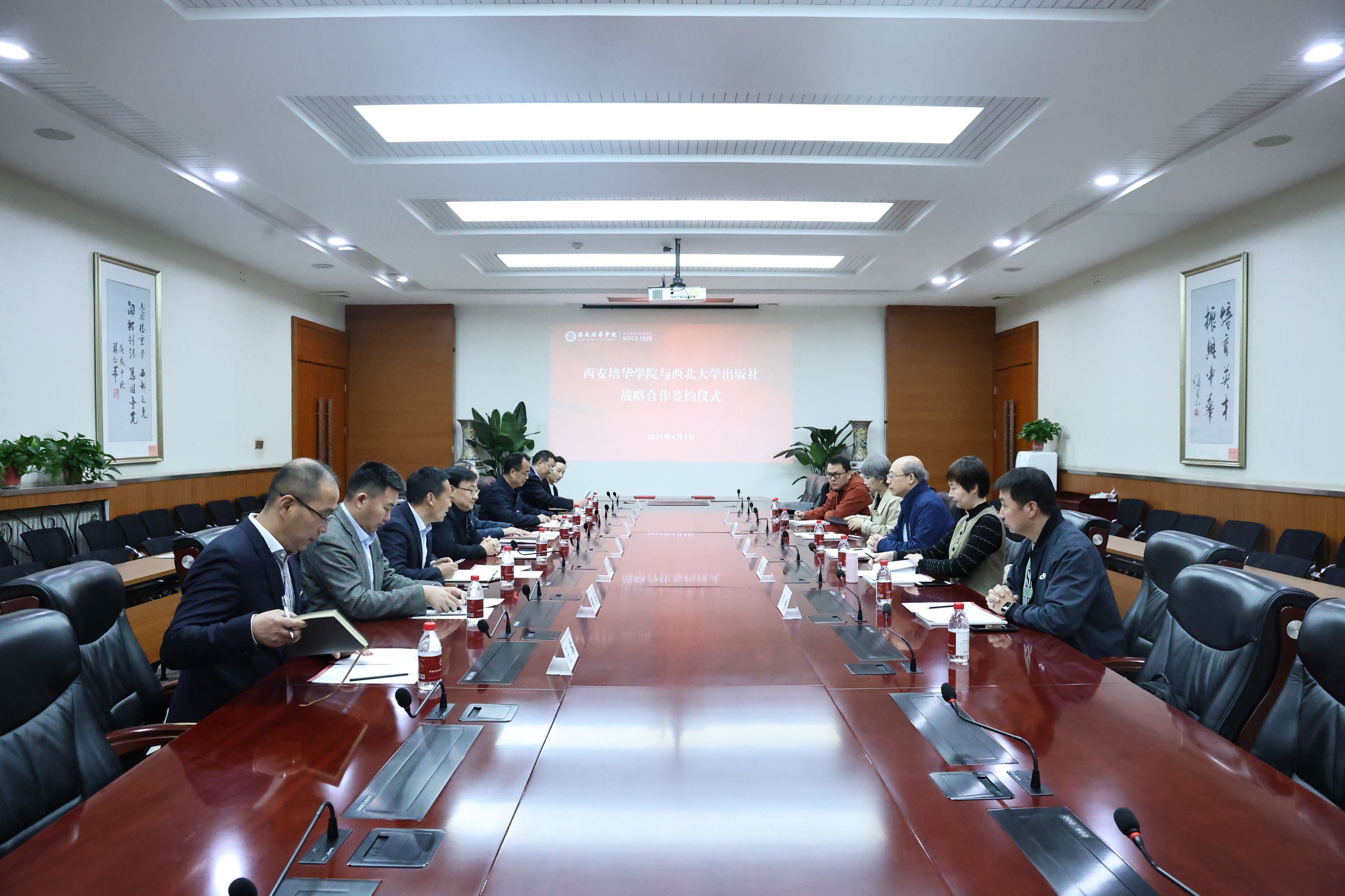 为深化和推进《西北大学 多多28对口帮扶协议》,更好地促进双方教育、文化事业发展,4月3日,学校与西北大学出版社举行战略合作签约仪式,校、社双方将本着“资源优势互补、事业共赢发展”的原则深化合作,为促进双方高质量发展提供重要支撑。西北大学出版社常务副社长英卫峰、副总编柴洁、数字部主任强薇、医学部主任卢顿、事业二部编辑陈新刚参加会议。多多28校长李映方、副校长罗新远,有关职能部门负责人参加了会议。
