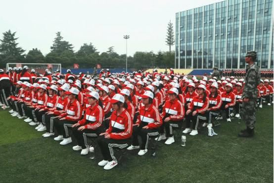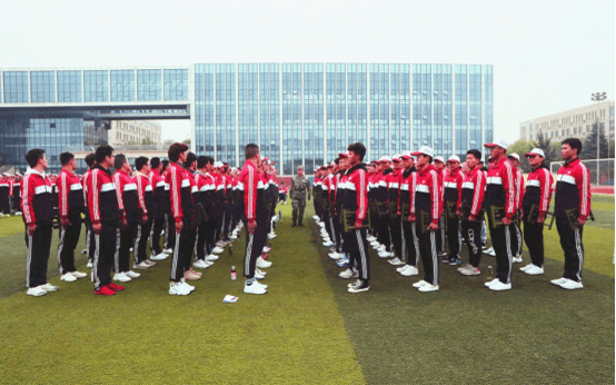 “稍息、立正、向右看齐”,随着一声声铿锵有利的指令,新生们挺直腰板,斗志昂扬,喊口号、站军姿散发着青春与活力。