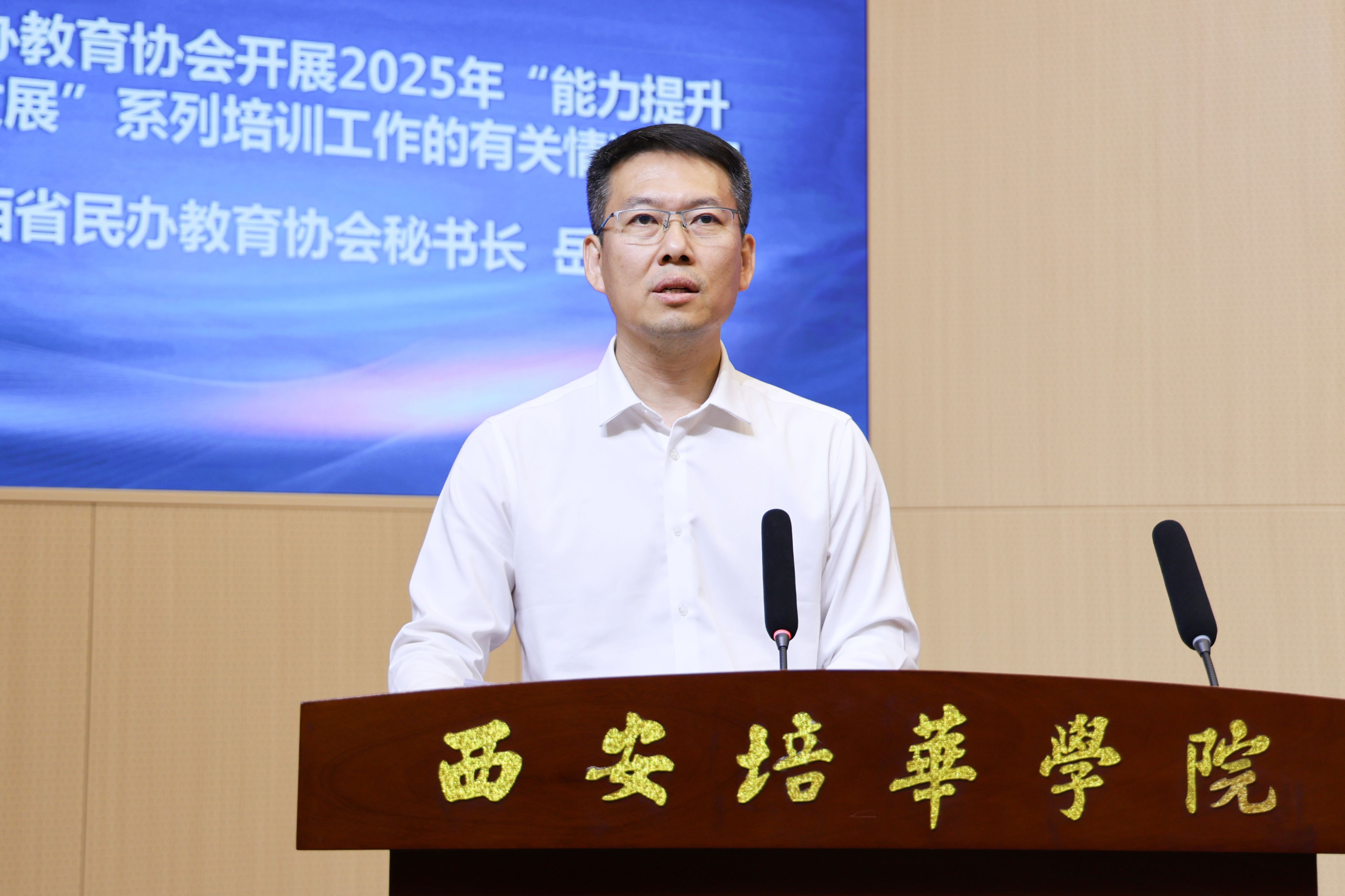 在开幕式上,岳沛磊秘书长详细介绍了省民办教育协会关于开展2025年“能力提升 驱动发展”系列培训工作的有关情况。他表示,协会始终以习近平新时代中国特色社会主义思想为指导,将行业服务作为重要抓手,以能力提升为有力支撑,以品牌建设为引领方向。将依托协会“陕光”云学堂品牌系列讲座和各级各类专家库资源,邀请权威专家、学者及办学人围绕民办教育党的建设、法律法规、财税管理、科技创新、学科建设、研究生培养等方面举办系列培训,持续助力陕西教育强省建设目标,作出民办教育行业应有贡献。
