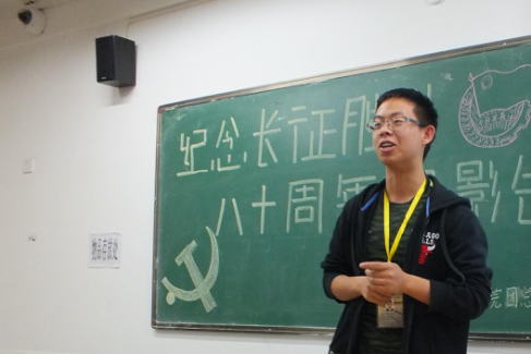 10月25日,人居环境与工程学院举办红军远征观影会,大会开始主持人杨青怡讲述了红军当年经历的苦难,以此感想以后,提醒现在大学生珍惜现在,不要忘记现在幸福是怎样获得。每位同学认真观看影片《大渡河》。并发表了自己的意见。尤其是全体起立合唱国歌,歌声响彻整个教学楼!观看完后学院党支部副书记彭天宇、青年志愿者协会会长庞勃发表观后感言。