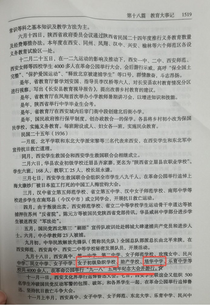 由陕西人民出版社出版的《西安市教育志》中记载了学校抗日活动