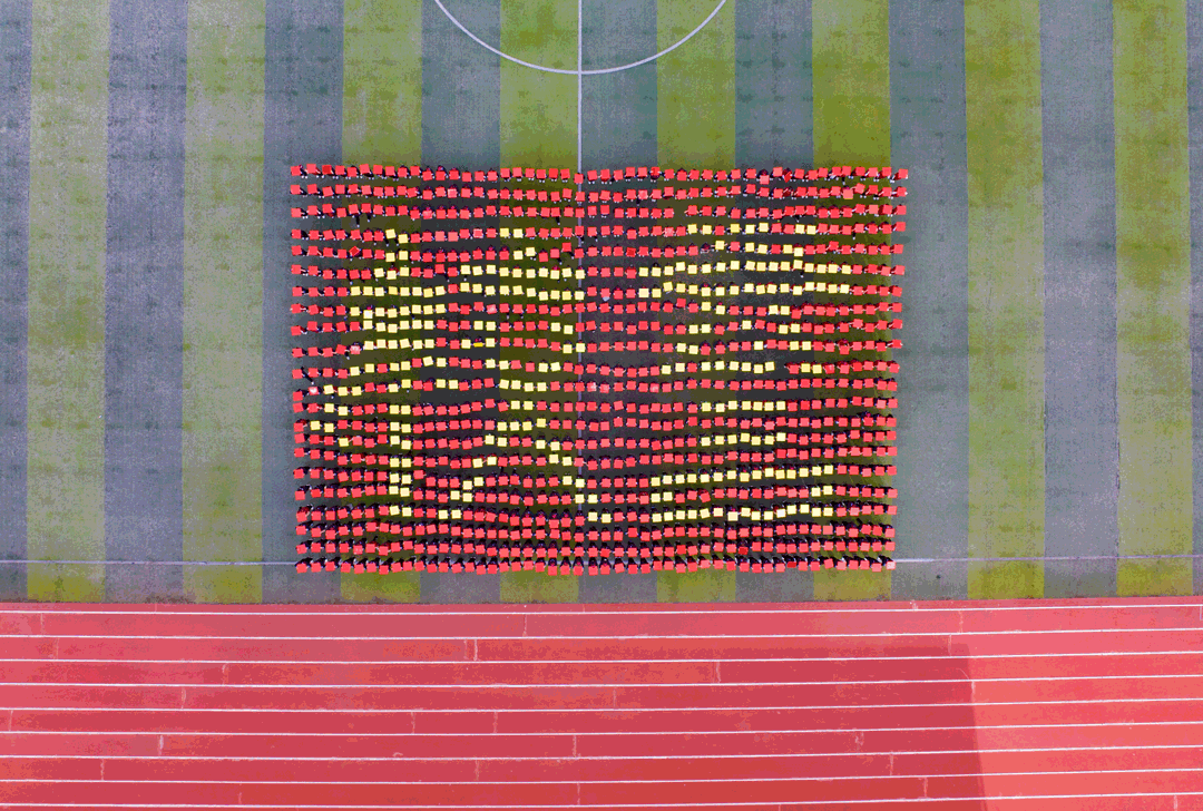 当巨型国旗在歌声中缓缓传递,全场万余人齐声高唱《歌唱祖国》,巨幅国旗由新生传递,歌声如潮,红旗似海,激昂的旋律回荡在教学楼与绿茵场上空,将历史的厚重、青春的朝气与家庭的温情融为一体,这是全体培华人对祖国的深厚感情和美好祝福。