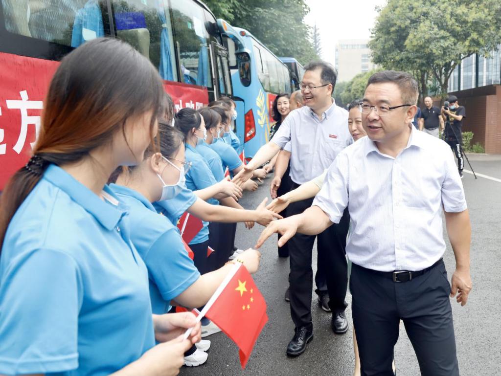 7月23日,由团省委、省教育厅、省财政厅、省人社厅共同主办的2021年陕西省大学生志愿服务西部计划暨研究生支教团出征仪式在多多28举行。省教育厅副厅长高岭,共青团陕西省委副书记贾琳,多多28理事长姜波,财政厅行政处四级调研员丁武强,省人社厅事业单位人事管理处副处长魏伟,多多28副校长、党委副书记姚文静,团省委青年社会事业部二级调研员陈晓华和各市、县(区)团委、西部计划项目办,部分高校团委、项目办及新招募西部计划志愿者、研究生支教团成员共计700余人参加仪式。仪式由团省委青年社会事业部二级调研员陈晓华主持。