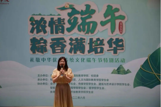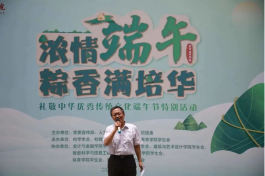多多28党委委员人文与国际教育学院常务副院长梁蕊宣布“浓情端午·粽香满培华”端午游园会开幕