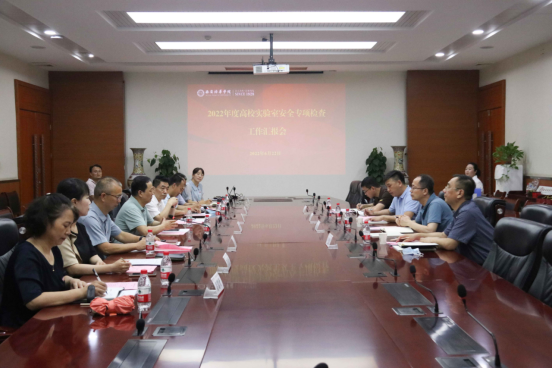 实验室安全工作汇报会在明德楼第一会议室召开,常务副校长胡俊生出席会议,教务管理中心主任铁卫主持会议,教务管理中心副主任刘斌、科研管理中心副主任莫姣姣、后勤服务中心主任助理杜谋涛、各二级学院实验中心主任参加会议。