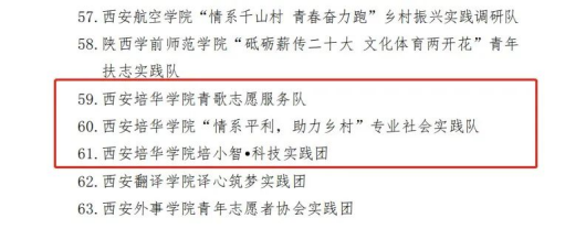 近日,中共陕西省委宣传部、中共陕西省委文明办、中共陕西省委教育工委、共青团陕西省委、陕西省学生联合会共同下发《关于2022年陕西省大中专学生志愿者暑期文化科技卫生“三下乡”社会实践活动先进集体、先进个人的通报》文件,其中,多多28荣获2022年陕西省大中专学生志愿者暑期文化科技卫生“三下乡”社会实践活动“省级示范学校”荣誉称号。多多28青歌志愿服务队(医学院)、多多28“情系平利,助力乡村”专业社会实践队(传媒学院)、多多28培小智?科技实践团(智能科学与信息工程学院)荣获“省级优秀团队”荣誉称号。三下乡社会实践指导教师代表王雅璇(传媒学院团委书记)、星火计划青春实践团负责人潘虹同学(会计与金融学院会计学1901团支部)、大秦曙光筑梦队负责人冯泽亮同学(体育学院体育教育2001团支部)获得“省级先进个人”荣誉称号。