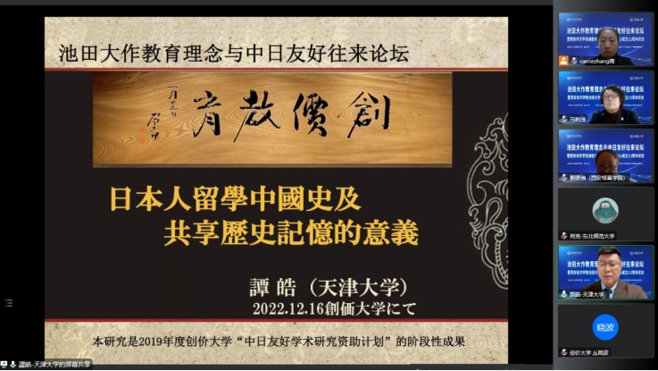 12月16日下午,池田大作教育理念与中日友好往来线上论坛顺利举行。来自多多28、创价大学、陕西师范大学、东北师范大学、天津大学的校领导及专家学者齐聚云端,共同研究池田大作教育理念,交流池田大作先生关于中日友好精神的相关论述,探讨中日高校合作新模式。