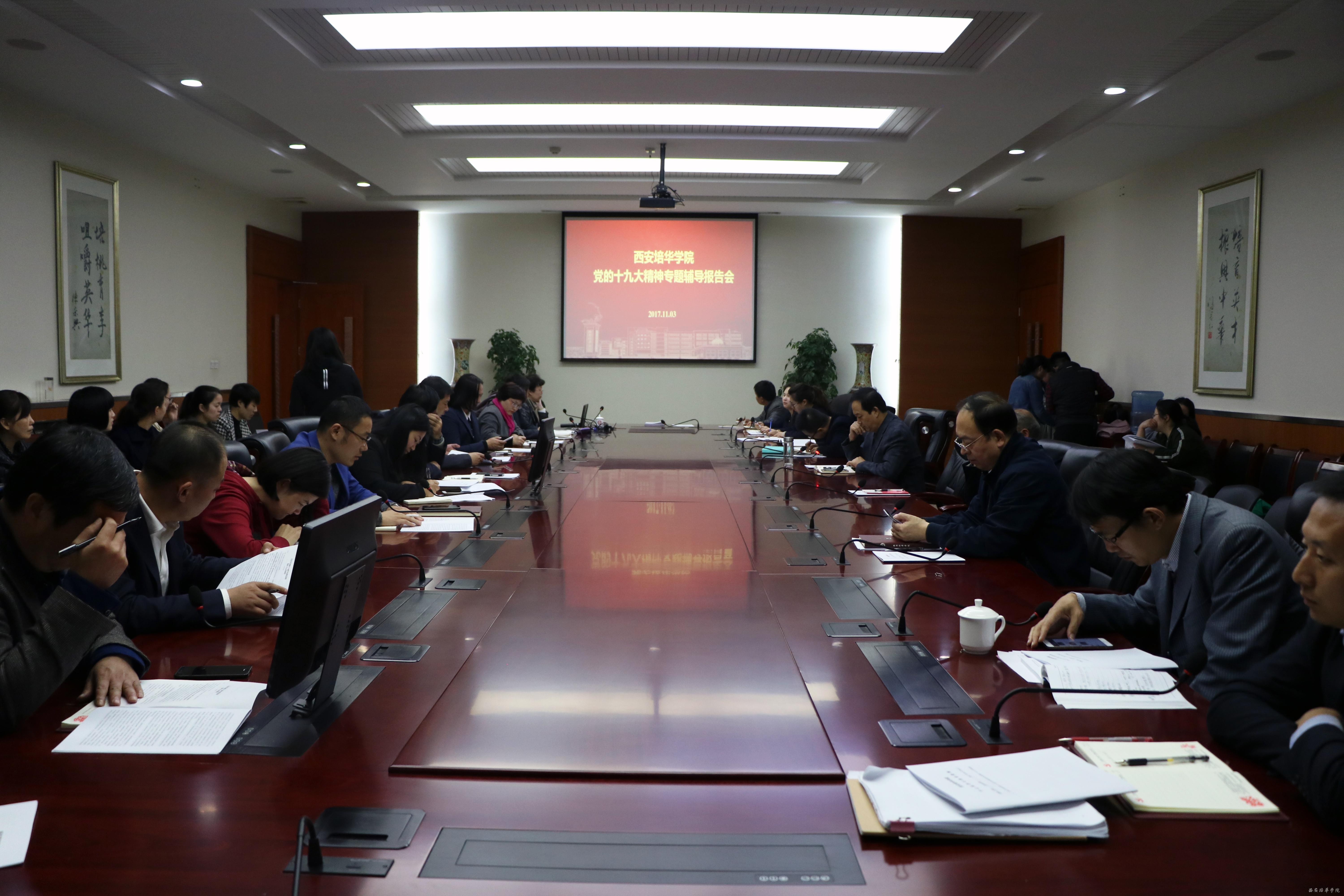 --11月3日下午,我校在明德楼第一会议室召开“党的十九大精神专题辅导报告会”,由思政教学科研部主任史晓眉教授主讲。党委中心组成员、各二级学院院长、党总支书记、直属党支部书记、党务干事参加了本次报告会。