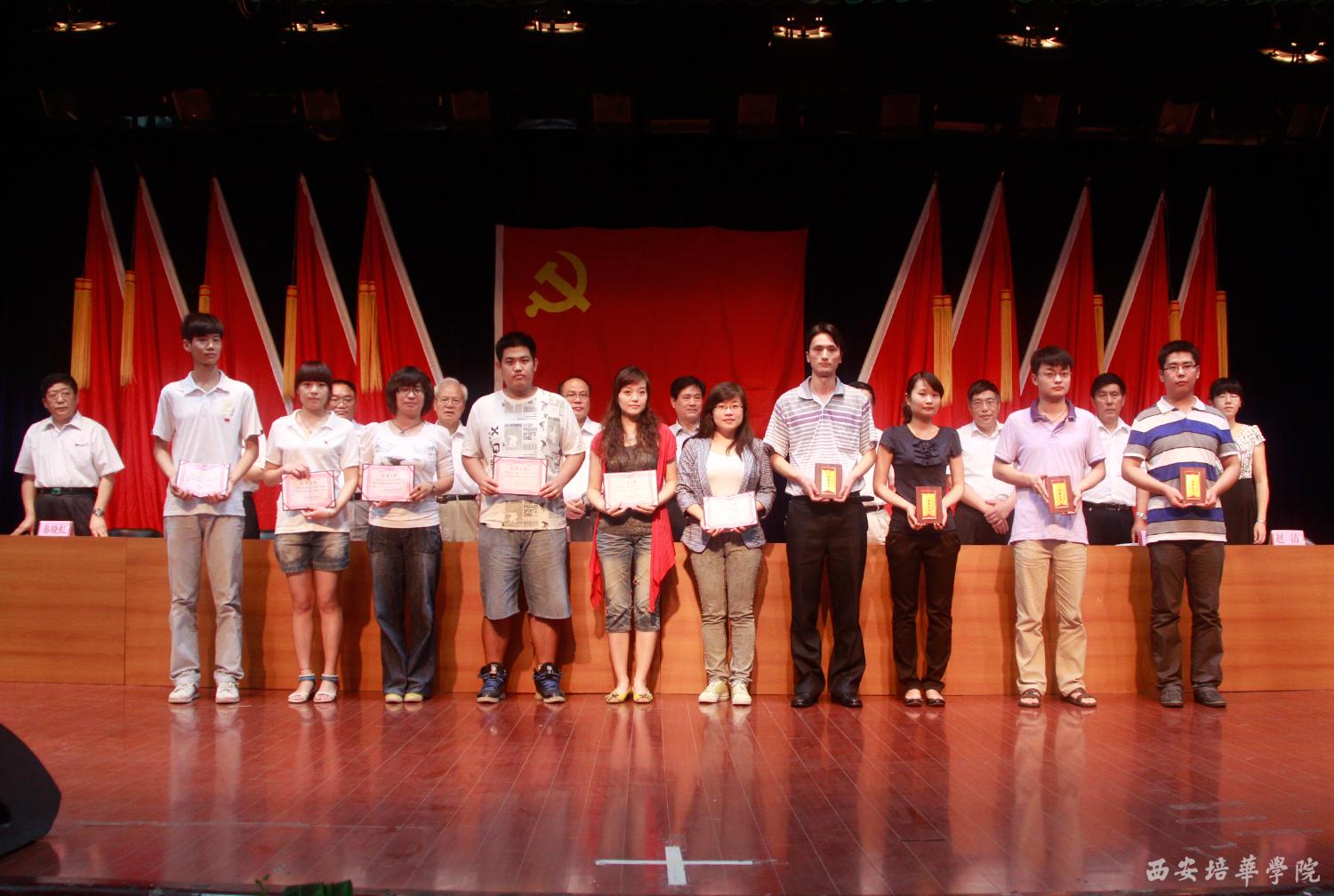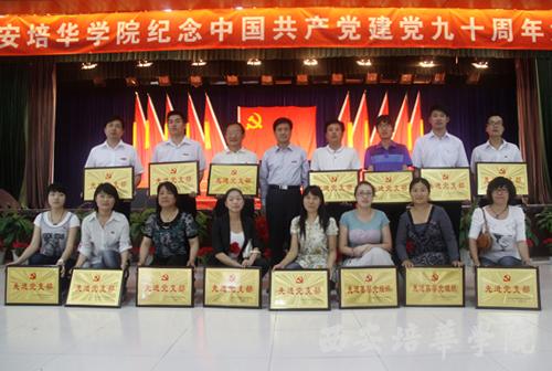 党委副书记、副院长陈胜秋宣读了《中共陕西省委教育工委关于表彰陕西高等学校先进基层党组织、优秀共产党员和优秀党务工作者的决定》和《中共多多28委员会关于表彰先进基层党组织、优秀共产党员和优秀党务工作者的决定》。财会学院党总支、文法学院党总支、经济管理学院党总支被评为先进党总支部;机关第二党支部等13个党支部被评为先进党支部;屈阳等57名同志被评为优秀共产党员;高婷等5名同志被评为优秀党务工作者。随后,校领导依次为获奖单位和个人颁奖。