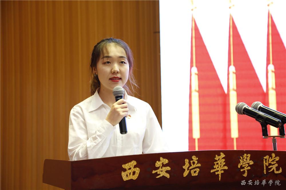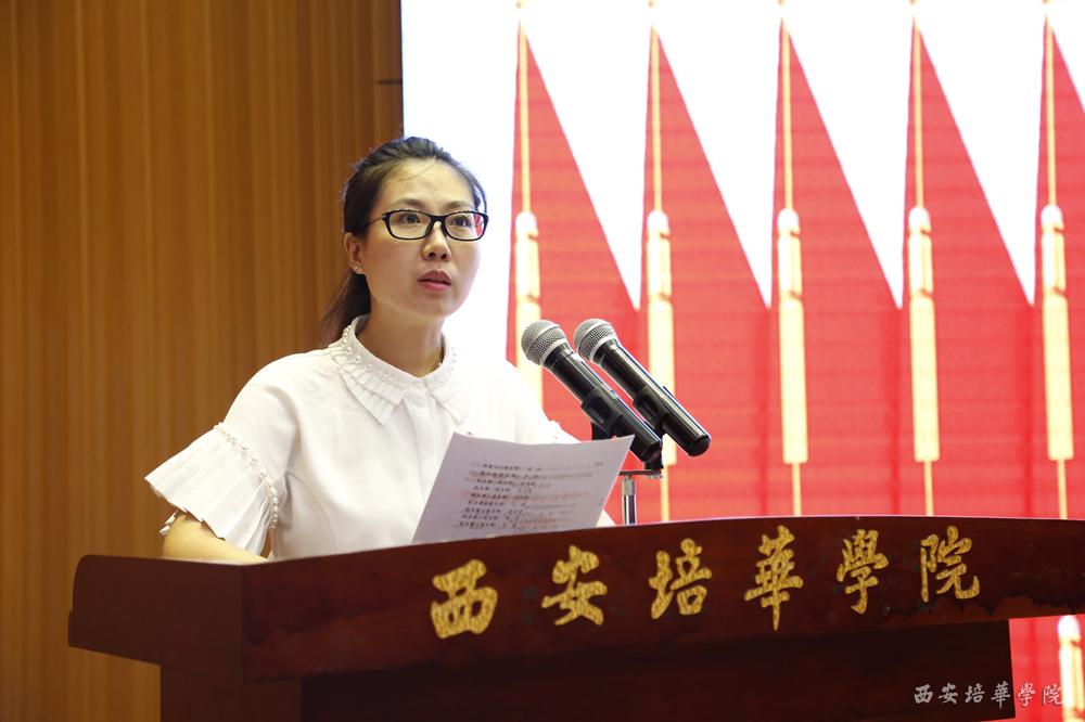 原国际教育学院党总支书记梁蕊同志作为先进基层党组织代表发言