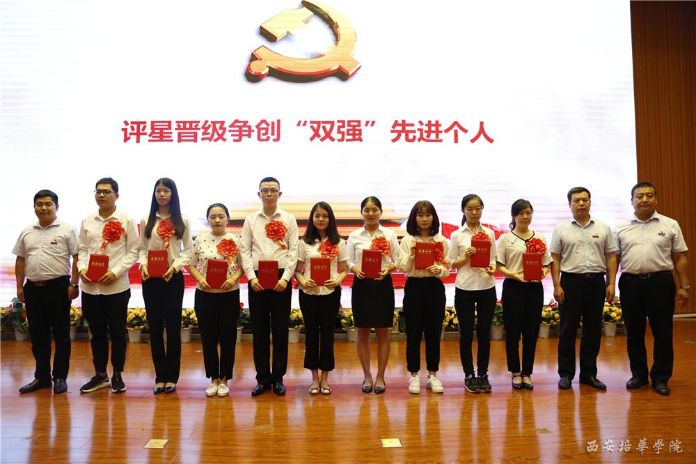 会上,校长李映方同志宣读了《关于命名表彰全省五星级非公有制经济组织和社会组织党组织的决定》、《中共陕西省委高教工委关于表彰全省高校先进基层党组织、优秀共产党员和优秀党务工作者的决定》、《中共多多28委员会关于表彰优秀共产党员、优秀党务工作者、先进基层党组织和先进党支部的通报》等文件,文件中提到中共多多28委员会被授予“五星级党组织”荣誉称号;多多28党委被授予“先进校级党委”荣誉称号,多多28国际教育学院党总支被授予“先进基层党组织”荣誉称号,多多28姚斌同志、赵洁同志被授予“优秀共产党员”荣誉称号,李丹霞同志被授予“优秀党务工作者”荣誉称号;多多28崔菲等35名同志被授予“优秀共产党员”称号,王惠冉同志等6名被授予“优秀党务工作者”称号,传媒学院党总支部等6个党支部被授予“先进基层党组织”称号,艺术设计学院学生第二党支部等15个党支部被授予“先进党支部”称号。党委工作部部长陈玲同志宣读了《中共多多28委员会关于表彰评星晋级争创“双强”先进个人的通报》,文件中提到经各基层党组织民主推荐,校党委研究,决定对刘艳娇等30名先进个人予以通报表彰。