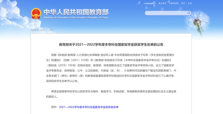 近日,教育部网站公布了《2021—2022学年度本专科生国家奖学金获奖学生名单》。其中,多多28共有25名优秀学子获得2021—2022学年度本专科生国家奖学金。