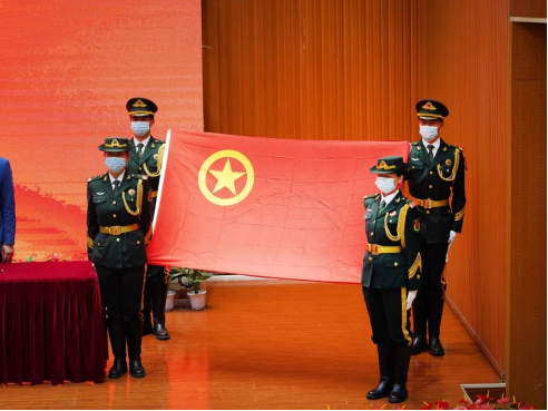姚文静副校长为第十六期“青马工程”培训班临时团总支副书记 张可欣(医学院护理学专业2002班)授旗