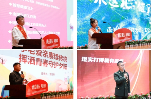 西安交通大学2008届博士毕业生、首都医科大学附属北京康复医院骨科主任杨华清,西北农林科技大学2022届本科毕业生、西北农林科技大学第24届研究生支教团广西分队队长王宁,咸阳师范学院2011届本科毕业生、陕西新聚福林养老服务有限公司总经理王旭东,西北大学2014届本科毕业生、中国人民解放军某部队政治工作部宣传科上尉干事曹达功分别作报告。他们从脚踏实地、传播肌骨健康,西部支教、托举青年梦想,赓续传统、投身夕阳产业,扎根军营、护卫祖国边防这四个主题,讲述了其在不同的领域上建功立业,跑出当代青年最好成绩的榜样故事,为践行“请党放心、强国有我”的青春誓言,写下了生动注脚。
