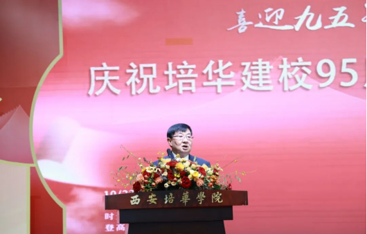 陕西省人民政府原副省长姜信真在大会上讲话,向培华建校95周年表示热烈祝贺。他指出,今天我们欢度重阳佳节,最难以忘怀的就是姜维之老校长,姜维之先生以其超常的坚毅品格,为办学付出了艰辛的努力,对培华倾注了巨大的热情和深沉的感情,成为培华发展的重要里程碑,是赢得了师生敬重与爱戴的拓荒者和教育家,是培华师生和广大校友心中高耸的丰碑与永远的骄傲!他衷心希望培华以建校95年为新起点,坚持铸魂育人,落实立德树人根本任务,传承好悠久的校史,奋力建好百年培华,努力培养更多高素质应用型人才,为阔步迈入国家高水平民办大学行列努力奋斗!