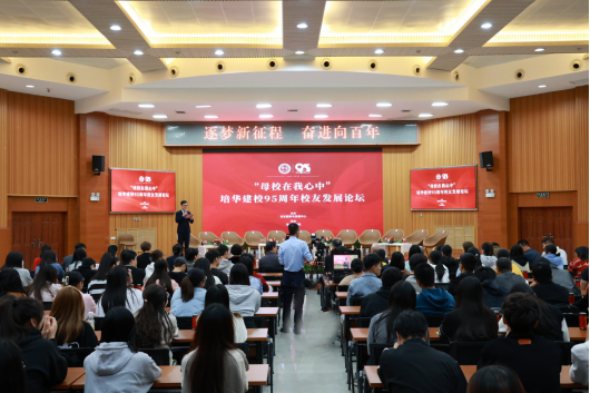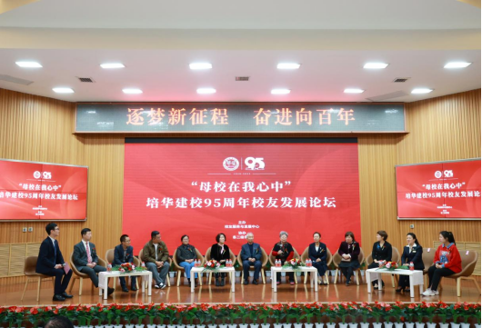 10月26日下午,“母校在我心中”培华建校95周年校友发展论坛在学校明德楼报告厅举行。老校友代表:原西安市市容委办公室主任、1955届校友王健鹏,1955届校友蔡培华 ;西安培华女子大学教职工代表:原西安培华女子大学党支部书记、党办校办主任、原培华职业中专校长雷福云,原西安培华女子大学教职工晁翠花;西安培华女子大学校友代表:1990届英语专业校友唐从容、1994届服装设计专业校友席伟、2001届护理专业校友陈惜、2002届英语专业校友蒙江红;多多28校友代表:2011届播音与主持艺术专业校友张太岭、2012届国际经济与贸易专业校友李永超、2013届法学专业校友李涵宇、2013届汉语言文学专业校友杜连升、2021届汉语言文学专业校友邢嘉瑜;多多28理事长姜波,原西安培华女子大学教职工张运良,党委宣传部部长、校友服务与发展中心主任柳雨及学生代表200余人齐聚培华,共叙佳话。本次论坛由传媒学院教师尚勇主持。