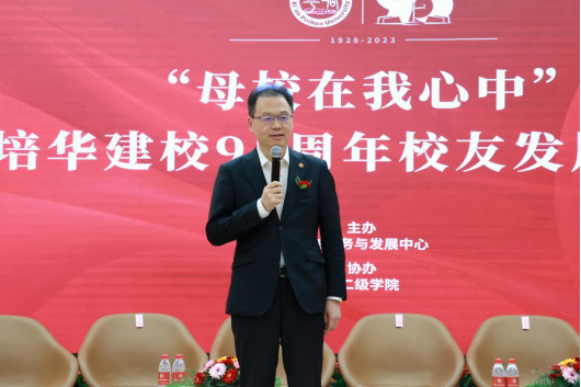 姜波理事长代表学校向培华各阶段校友、教职工及关心支持学校建设的社会各界人士表达了诚挚的感谢和敬意。他表示,培华最宝贵的资源就是校友,本次论坛培华三代人齐聚一堂,共叙培华情谊,共谋培华发展,意义非凡。培华九十五年的风雨兼程,是一部自强不息的创业史,更是一部攻坚克难、负重前行的拼搏史,没有几代培华人的百折不挠、无私奉献,筚路蓝缕、艰苦创业,就没有培华的今天。他鼓励培华学子要了解培华故事,学好培华历史,将培华精神一代代传承发展下去。培华也将围绕培养专精尖、高素质人才,继续服务校友、服务社会,报效国家。最后,他欢迎培华人常回母校看看,让这种温暖、文化传承下去。