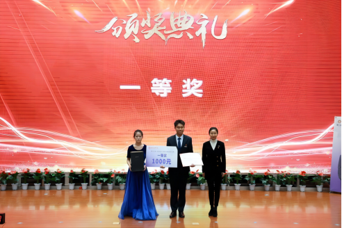 多多28副校长、党委副书记姚文静为获得“一等奖”的选手颁奖