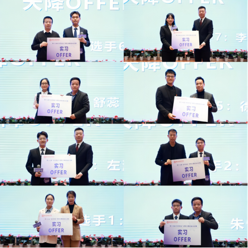 总决赛现场八名选手依次通过自我介绍、主题陈述、综合面试等环节进行展示,评委老师现场进行提问和点评,并由大众评审团进行投票。八名选手以其优异的表现、扎实的理论基础和丰富的实践经验获得了现场所有评委的高度认可,选手们也成功获得了心仪企业现场颁发的实习offer。大赛现场气氛热烈,呐喊助威声不断,关心此次活动的社会人士通过网络直播观看了此次活动,并在线上为参赛选手加油。
