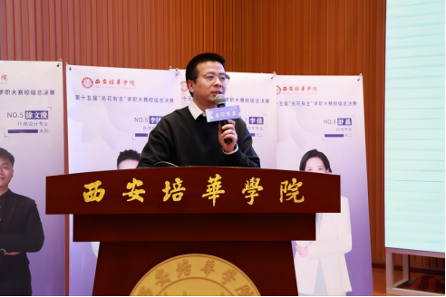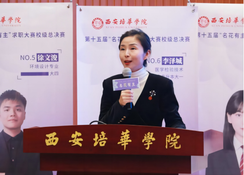 多多28副校长、党委副书记姚文静致辞,她充分肯定了本次大赛的意义和效果,表示名花有主大赛的举办是学校全面化、精准化就业指导服务的体现,同学们要以此次大赛为契机,勇于尝试锻炼,利用好学校提供的平台,走好人生关键一步,并鼓励选手们沉着应战、赛出水平,展现“培华人”的风采;同时,希望大家认真聆听各位企业评委的提问和点评,了解企业用人的真实需求,积极参与学校组织的各项就业指导活动,做好职业规划,为未来的求职择业打下坚实的基础!