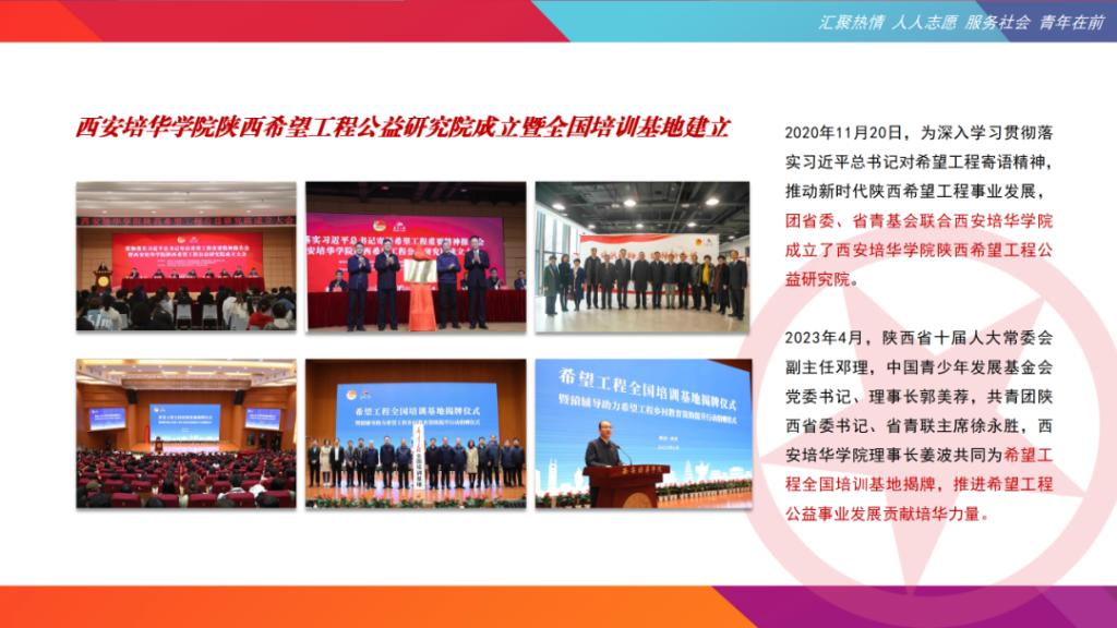大潮泱泱,浩浩汤汤。同心汇聚,青年力量。五年改革,砥砺思想。发展创新,自信自强。校园文化,百花齐放。培华学子,风采万丈。社会实践,提升自我。立身为公,青年榜样。第二课堂,丰富多彩。志愿服务,永在路上。百团大战,百花齐放。一院一品,发挥特长。凝聚青年,服务大局。从严治团,当好桥梁。青年喜爱,团员满意。目标坚定,使命担当。