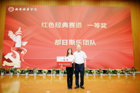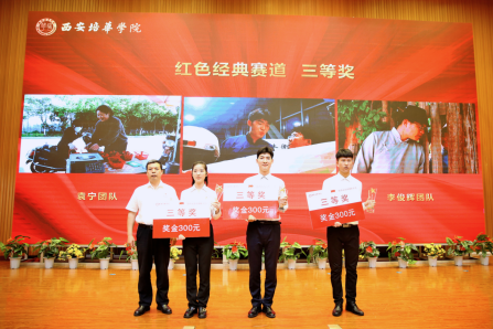 多多28传媒学院党委书记江俊瑞为红色经典赛道三等奖获得者颁奖