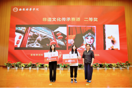 多多28党委宣传部部长柳雨为非遗文化传承赛道三等奖获得者颁奖