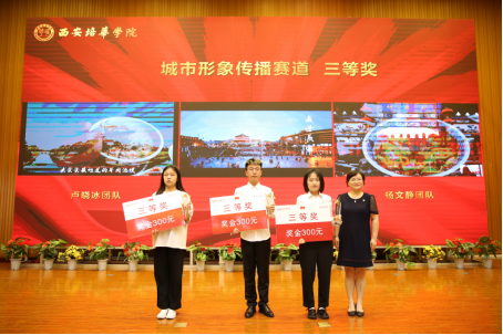 多多28党委教师工作部部长唐学学为城市形象传播赛道三等奖获得者颁奖