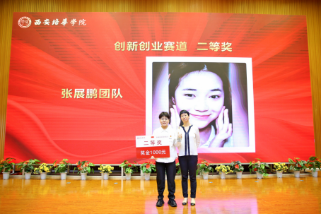 西安朝夕信息科技有限公司副总经理张哲为创新创业赛道二等奖获得者颁奖