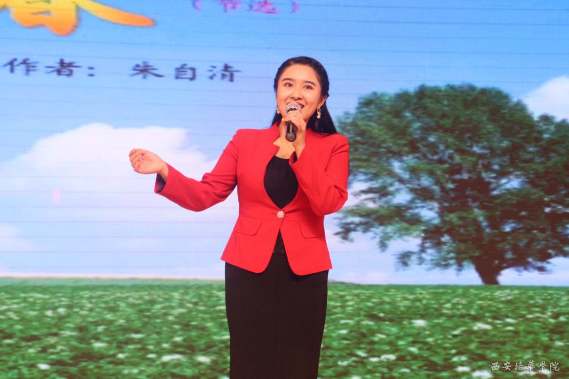 西安交通旅游广播总监、陕西省朗诵艺术专业委员会副主任、著名朗诵艺术家凌江老师点评教工组的比赛。凌江老师评价说,每一位老师的作品都是有份量、有高度的。无论是对祖国的歌颂,还是对抗击疫情的感动,都体现出老师们对祖国的崇高的敬意。尤其是培华的歌颂使他感触很深,这篇原创颂文被凌江老师高度赞扬,在一个把诗和远方中的美好作为生活的主题的环境中,培华一定会更加优秀。