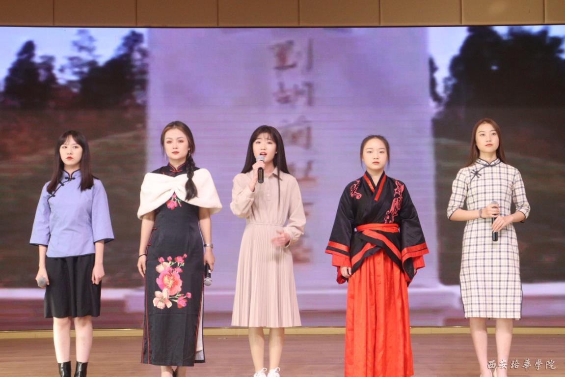 从《致终南山》到《雪,落在中国的土地上》,从《我爱我的祖国》到《巾帼传》,从《沉马》到《钢铁》,经过同学们的精彩朗诵,好似往昔与当今完美统一。舞台上,同学们伴着优美的配乐,深情的朗诵和真挚的情感,形成了一道道洪流,带着诗韵之美和不屈坚强的精神,涤荡着在场所有人的心。一回回深沉的呼唤汇成一句话:我爱你,中国!