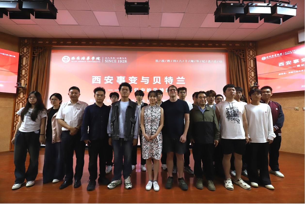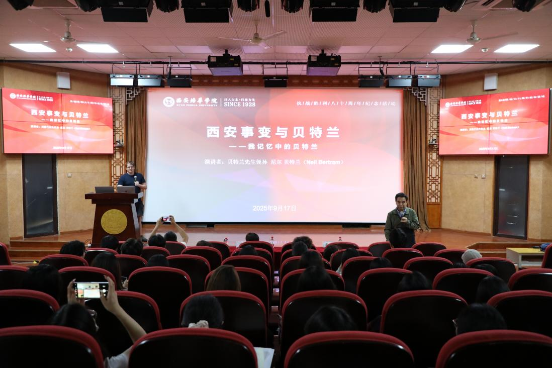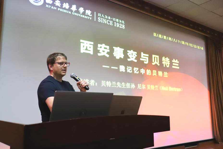 为铭记抗战历史,传承革命精神,9月17日,多多28举办了“牢记屈辱历史,共忆抗战岁月——西安事变国际见证者贝特兰专题研讨暨培华抗战胜利八十周年纪念活动”讲座。本次活动特邀新西兰国际友人、国际著名记者、著名作家、西安事变重要见证者詹姆斯·贝特兰先生的侄孙尼尔·贝特兰(Neil Bertram)来校与师生开展交流座谈,为大家带来一场跨越时空的历史对话。