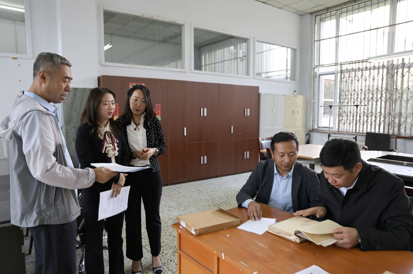 调研组一行两次走进长春市档案馆查阅原国家统计局长春统计学校民盟史料