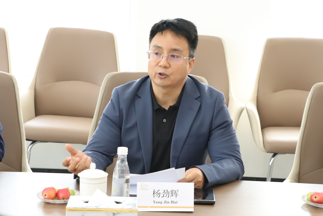 校长助理鲍伟全面介绍了学校的办学特色与“产教融合、协同育人”战略,特别指出药学作为申硕重点学科、康复治疗等医学专业在区域医疗人才培养中的重要作用,提出在实习基地建设、联合科研攻关、产业导师互聘等领域展开深度合作的构想。