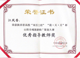 近日,由中共陕西省委教育工委主办、西北政法大学承办、商洛市山阳县人民政府协办的陕西省高校“双百工程”“漫·天·月”杯山阳全域旅游推广大赛中,多多28学生团队荣获二等奖一项,任宇春、黄荟臻两名同学荣获“山阳旅游形象大使”称号,江凤香老师荣获“优秀指导教师”称号。