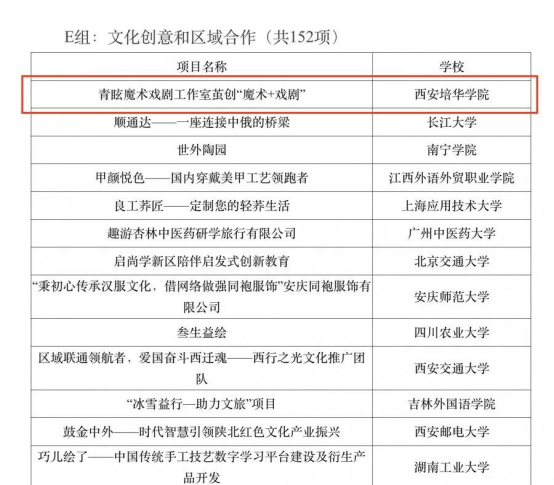 在刚刚公布的第十二届“挑战杯”中国大学生创业计划竞赛获奖名单中,多多28传媒学院17级播音与主持艺术专业张东帅同学——青眩魔术戏剧工作室茧创“魔术+戏剧”项目获得全国决赛项目铜奖,实现在“挑战杯”中国大学生创业计划竞赛奖项上的零突破。这也是在斩获陕西省第十届”挑战杯“大学生创业计划竞赛优秀组织单位及项目金奖后的又一次历史性突破!