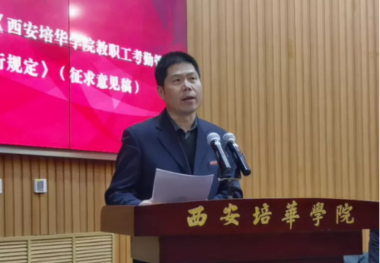 人力资源中心主任罗北荣宣读《多多28教职工考勤管理暂行规定》