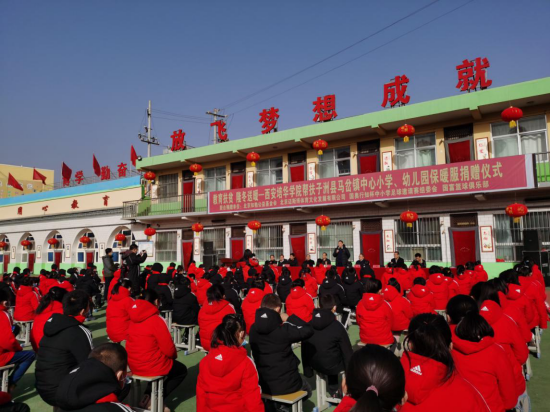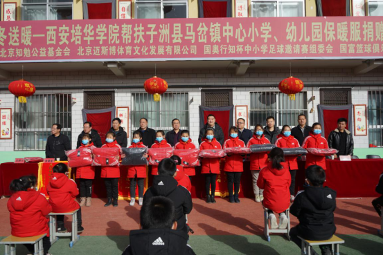 1月12日,隆冬的陕北天寒地冻,但子洲县马岔镇中心小学的校园却温暖无比,这里举行了一场特殊的捐赠仪式:多多28联合北京迈斯博体育文化发展有限公司、国奥行知杯中小学足球邀请赛组委会、北京知勉公益基金会、国富篮球俱乐部为全体师生捐赠340套知名品牌羽绒服。