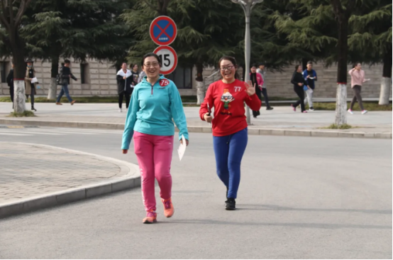 随着波哥的发令枪声响起,热情高涨、跃跃欲试的教职工们,迈着欢快而又矫健的步伐,沿着比赛路线走向打卡点。大家意气风发、甩臂迈步,有说有笑,其乐融融,在工作之余欣赏校园春景。