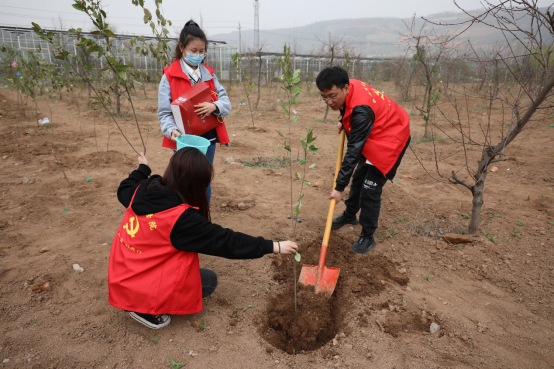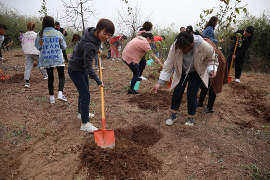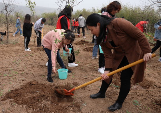 新未来研学实践劳动教育基地的工作人员细心为大家示范了挖树坑、解草绳、插树苗、一次培土、提苗等系列规范动作,让志愿者们学到很多种植经验,同时大大提高了树苗成活率。随后,大家三五一组,分工合作,以饱满的热情投入到植树行动中。
