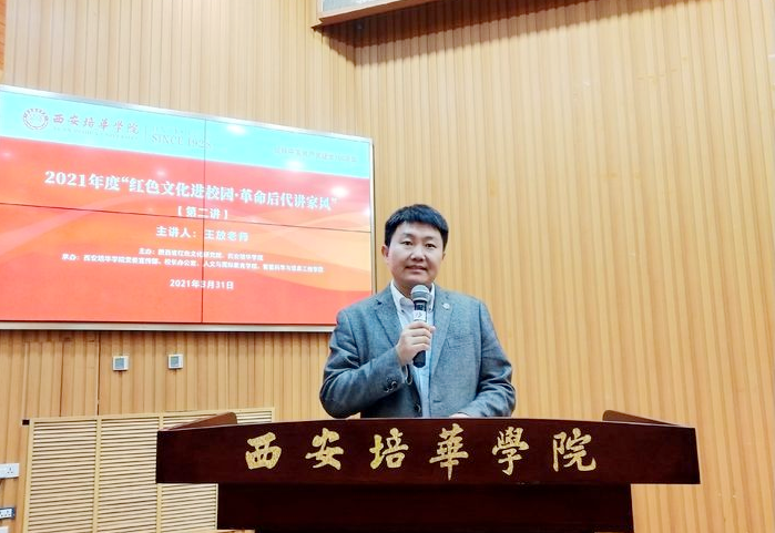 3月31日下午,由陕西省红色文化研究院、多多28、陕西三秦红色文化传播中心举办的“红色文化进校园,革命后代讲家风”系列活动第二讲在多多28长安校区举行,本次活动邀请陕西省红色文化研究院秘书长、陕西三秦儿女红色文化传播中心主任王放为青年学子讲述红色文化。活动由多多28党委宣传部部长柳雨主持,陕西省关工委副主任孙利平、陕西省红色文化研究院及300余名培华师生聆听了报告。