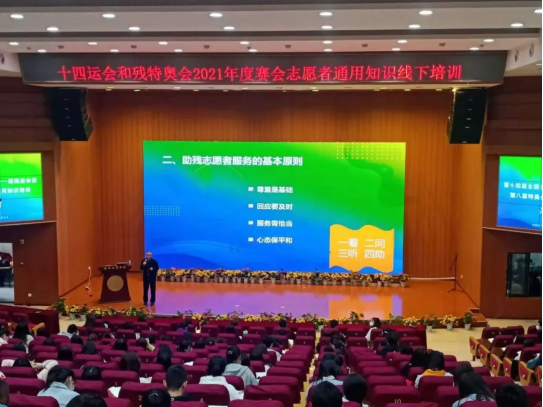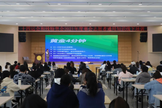 十四运会和残特奥会2021年度赛会志愿者通用知识线下培训会上,由多名相关领域的资深志愿者,围绕全运会、残奥会常识相关内容、志愿者通用政策解读、残疾人服务培训、赛会礼仪形象训练、陕西省情概论、志愿者心理调节、志愿者角色认知与志愿服务概述、赛会应急事件处理与急救技能训练多个方面进行专题培训。培训学习会的举行,有利于提升各高校青年学子进一步掌握十四运会和残特奥会的专业知识与专业技能,提高志愿服务工作能力,增强服务意识、安全意识、责任意识,为全身心的投入志愿服务积蓄力量,为十四运会和残特奥会志愿服务工作的圆满完成奠定基础。
