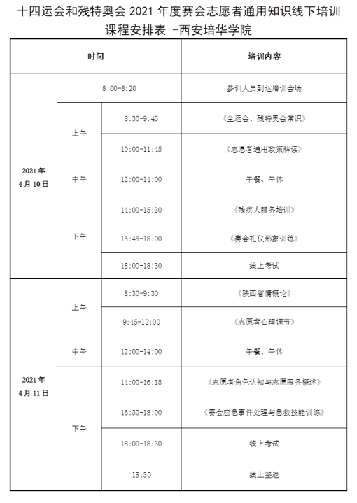 志愿者培训课程安排: